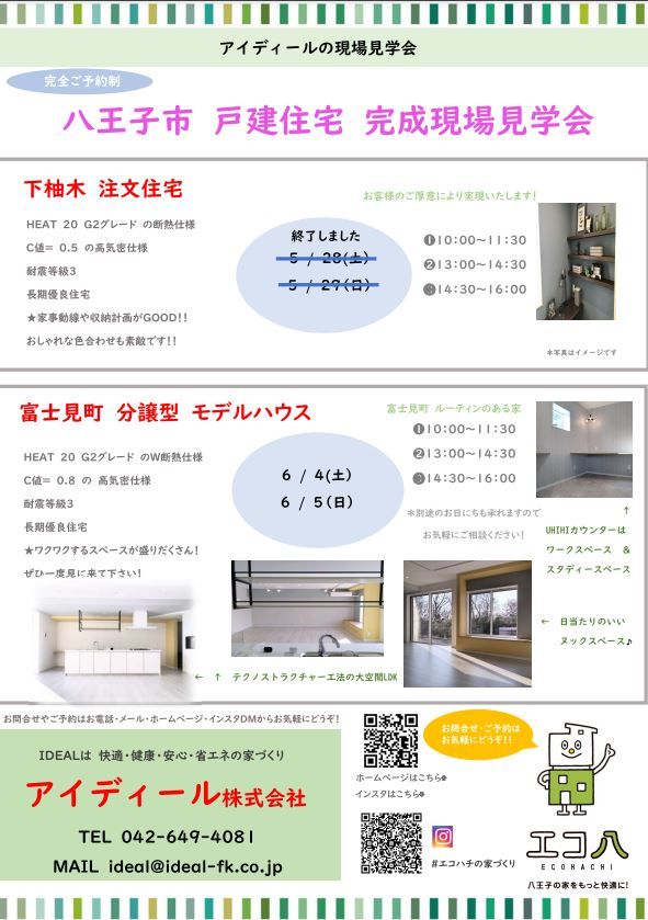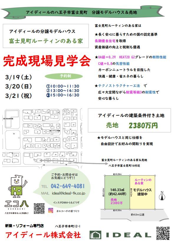 八王子市下柚木 3/12(土) 3/13(日)瑞穂町むさし野 3/19(土)3/20(日)3/21(祝)10:00~15:00「完全予約制」