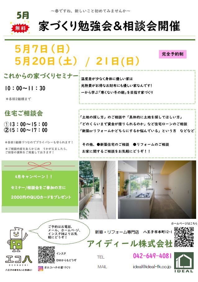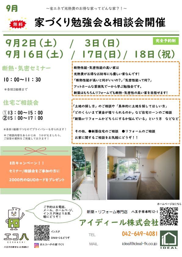 「高断熱・高気密の家は省エネでお財布にも優しい家なんです!」をテーマにした勉強会と個別相談会 /新築をお考えの方もリフォームをご検討中の方も、どちらがいいか迷っている方もお気軽にご参加ください!