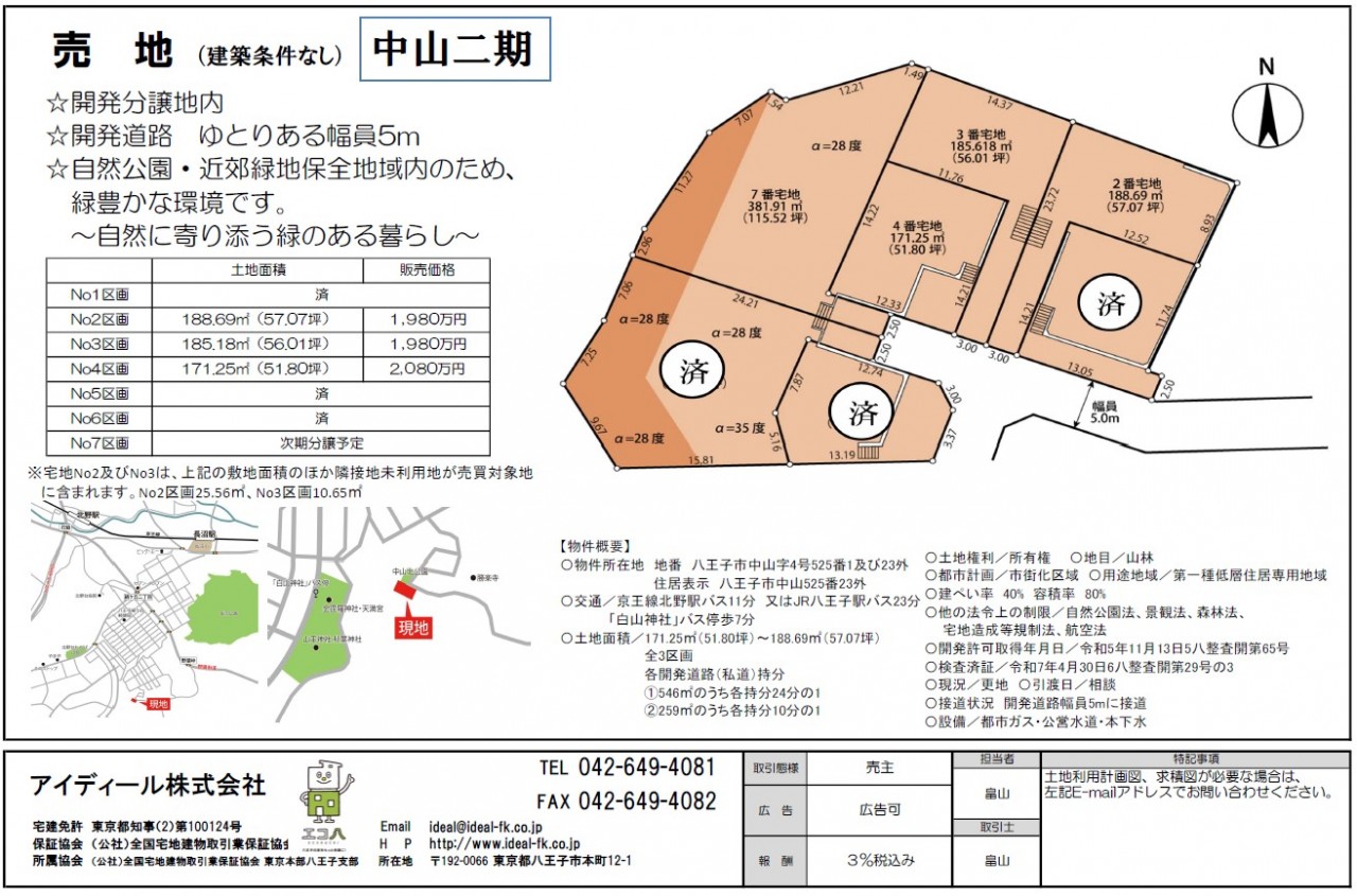 昨日、中山2期5区画と6区画が成約となりました。