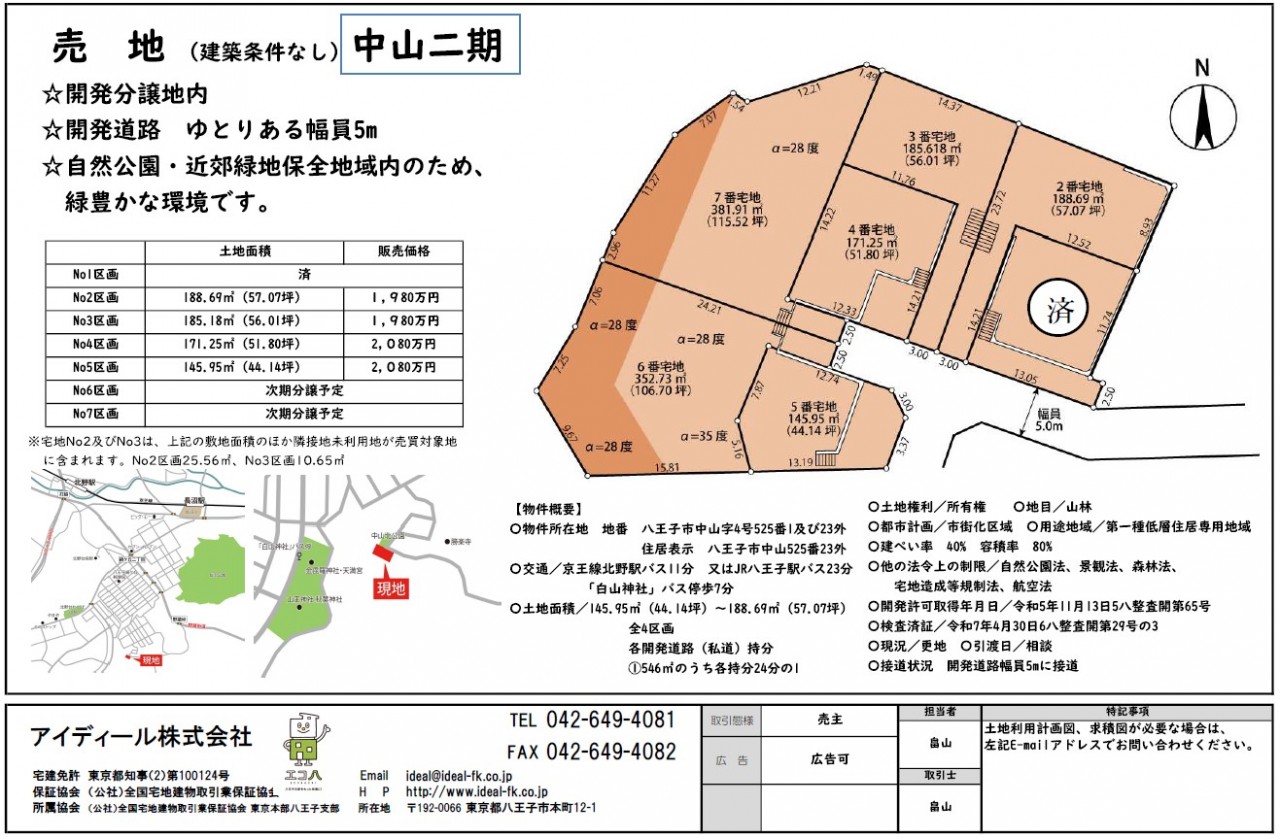 現在、弊社で販売中の中山2期ですが、2区画~5区画までの残り4区画となりました。