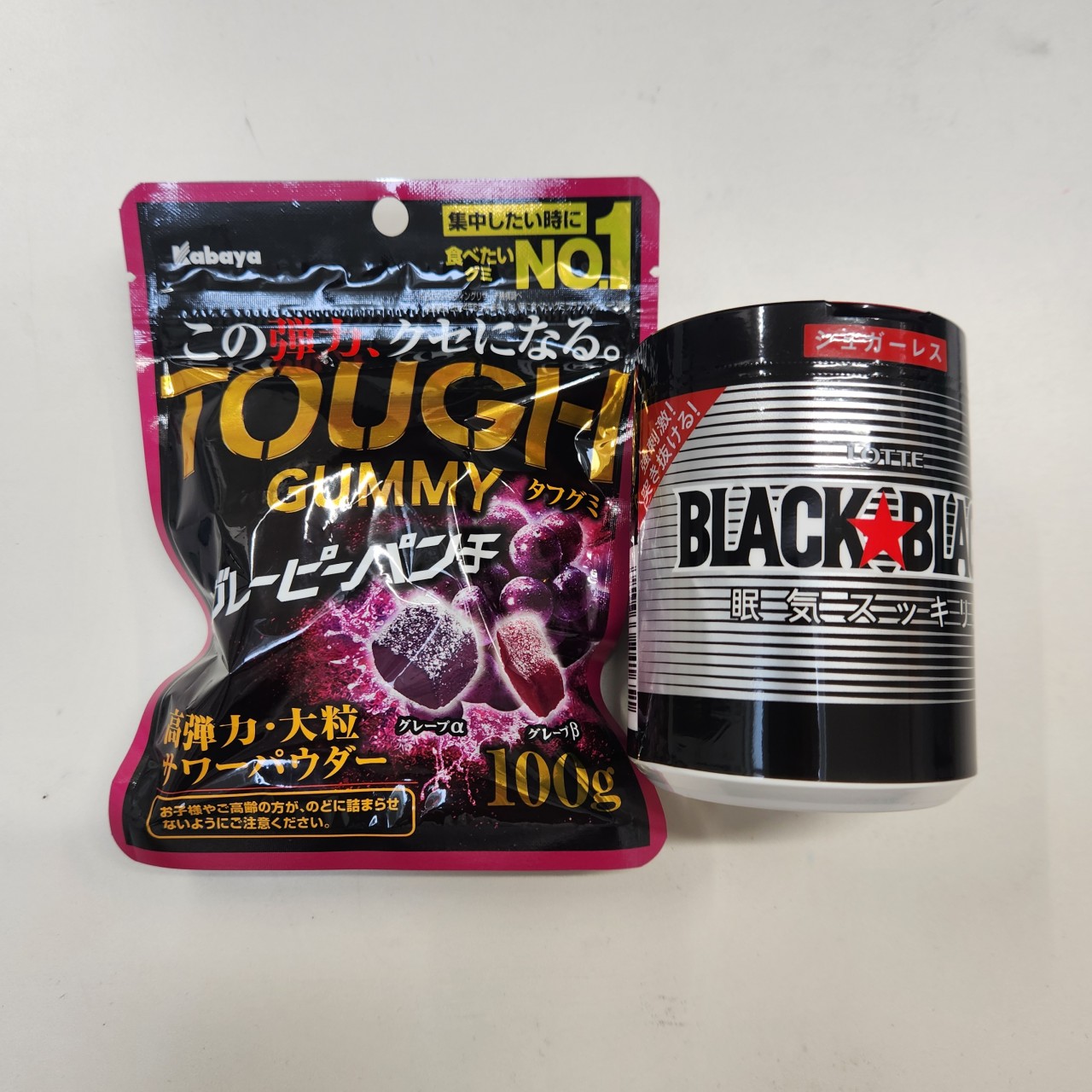 グミは集中力を高め、ブラックガムは眠気を吹き飛ばします。