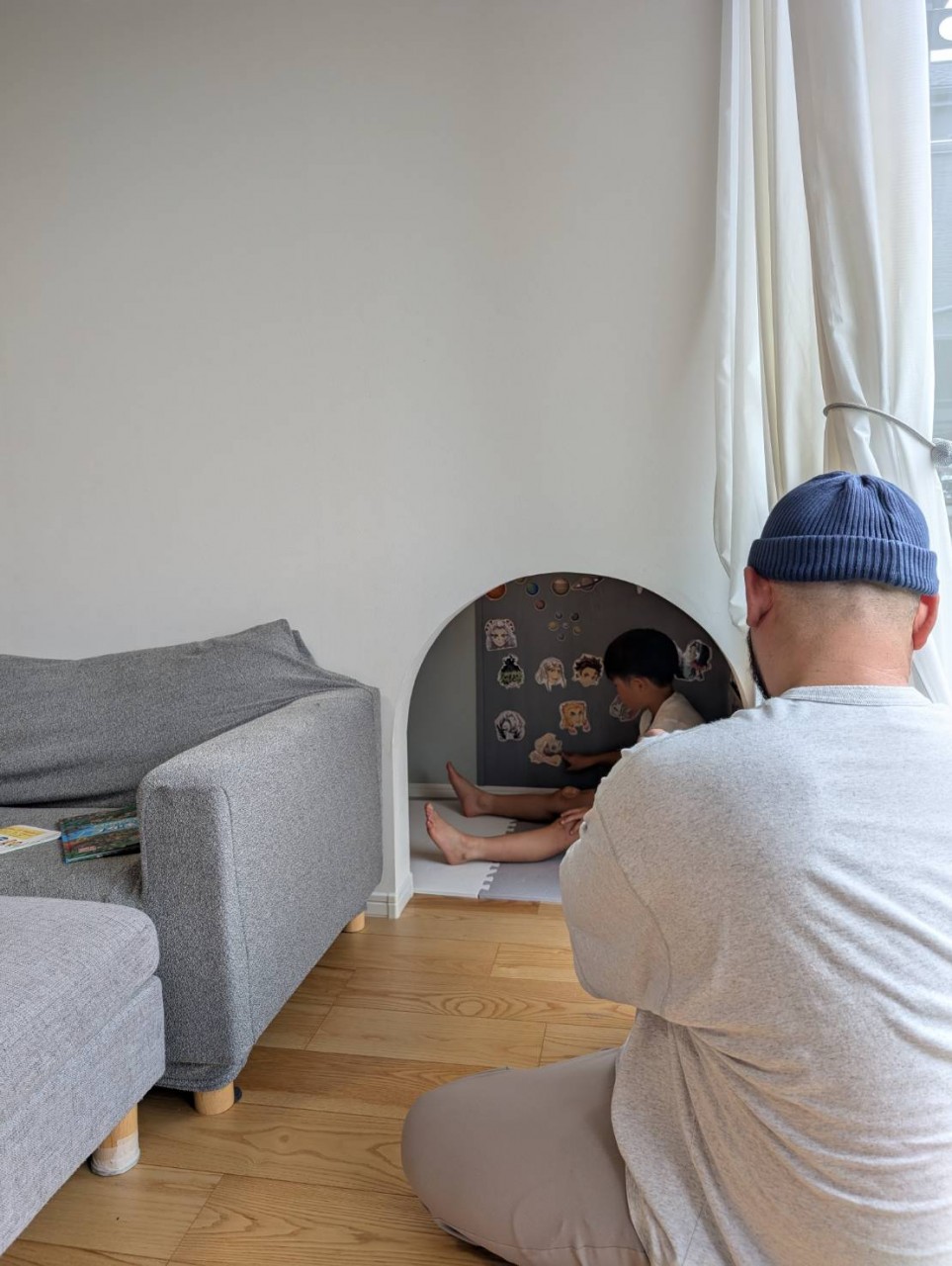 先に子供が見に行って、