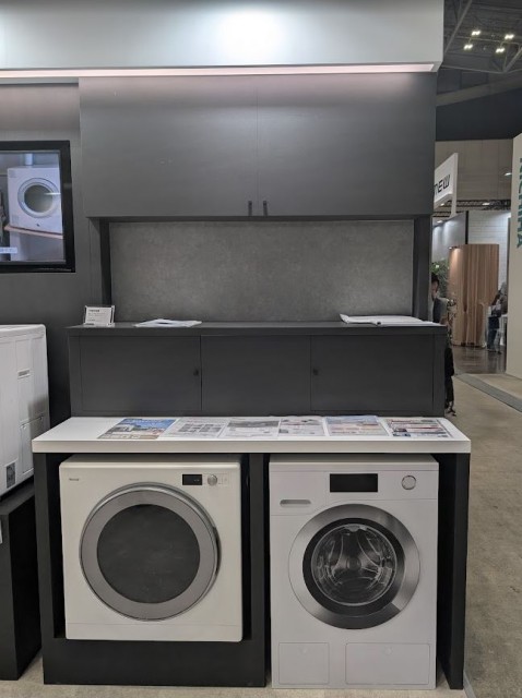 大人気の衣類のガス乾燥機乾太くんの置台はいくつかのメーカーが展示していました。