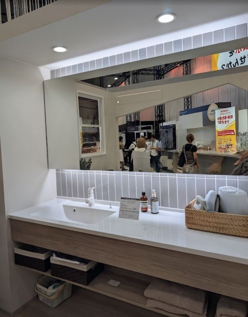 また、最近は造作の洗面カウンタータイプがとても人気で、メラミン系のカウンターで使いやすいものというと、これまで決まったメーカーのもが定番だったのですが、その需要に切り込んで各社さん使いやすいカウンタータイプの商品をだしてきているな、という感じです。