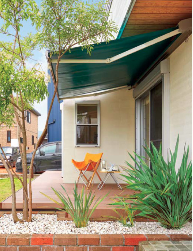 オーニングの日射遮蔽で冷房費をお得に、自然の風と光で快適空間!