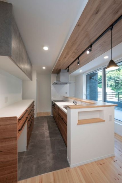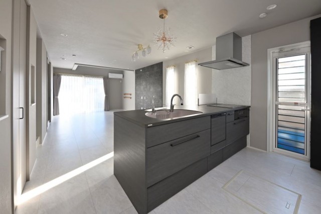 去年からお引渡しした多くのお宅で、キッチンの床にはLDとは違ったフロア、水にも強いフロアを選択されることが多いです。