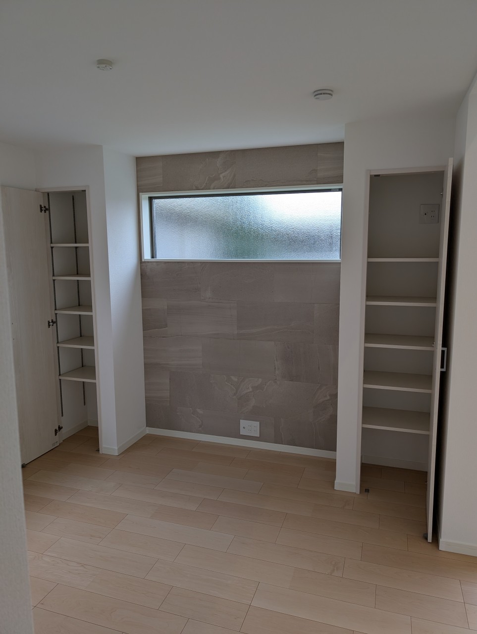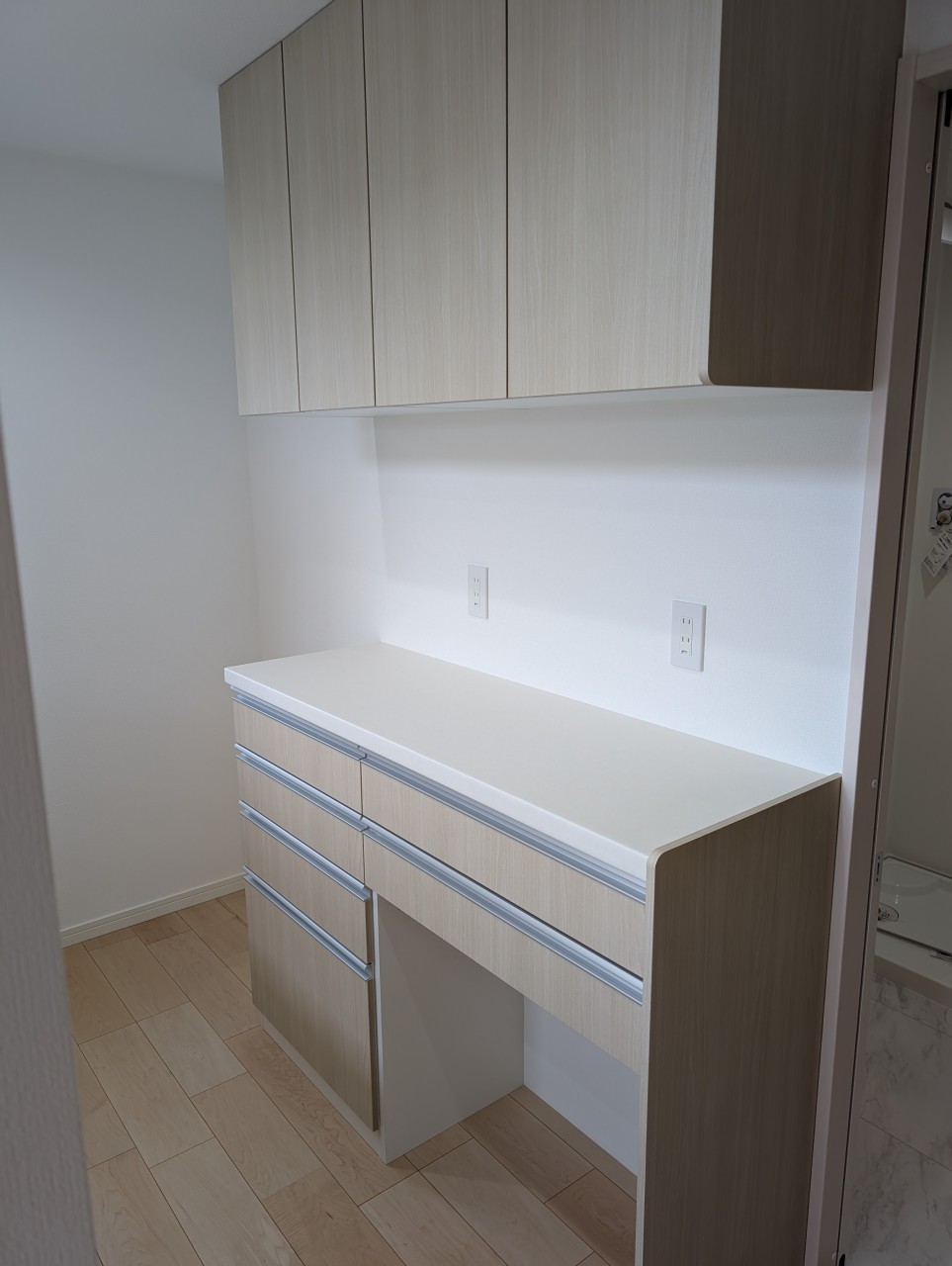 小さな可動棚を設置して収納力アップ、デッドスペースを有効活用してます