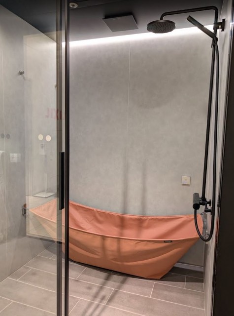布製なので、毎日は浴槽に入る習慣のない方は普段は取り外して広々としたシャワーブースとして使えたり、何と言っても浴槽が防水仕様の布でできているので、軽く扱いやすいのが特徴です。今までなかった発想で生活の多様性を実現、活気的な商品ですよね。