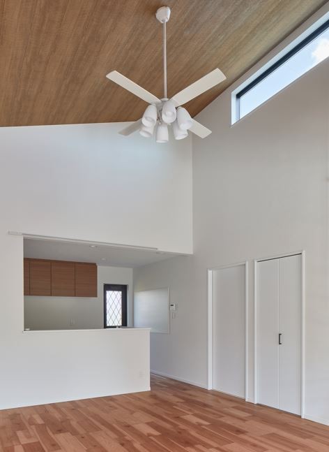 クローゼットなどの収納扉ならずとも出入り口の扉もホワイトにしてすっきりと壁面を納めるのも、床や天井や家具などの木目が活きてよい雰囲気です。