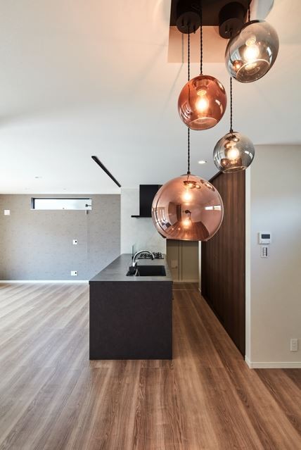 上の写真の事例もそうですが、ミディアム系の床の事例をいろいろ見ていると、アクセントで入れるカラーを際立てておしゃれに活かすのに、建具も同系色でえらばれることが多いのかなと思いました。