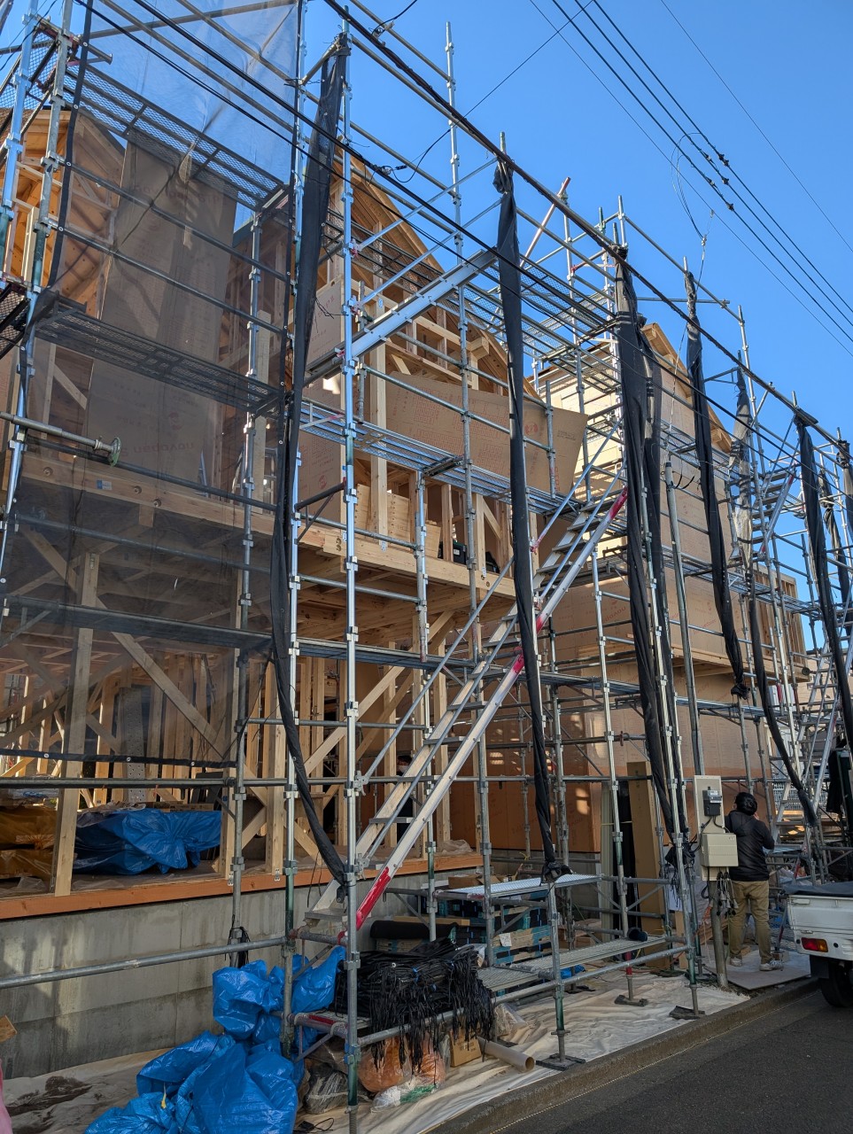 先月上棟した「西東京の家」は2棟上棟して大工さん工事中です