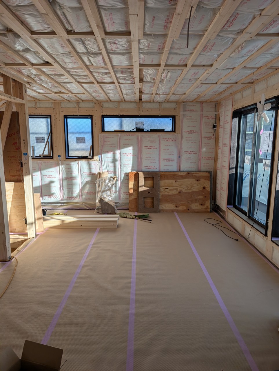 室内は断熱施工が完了したところです