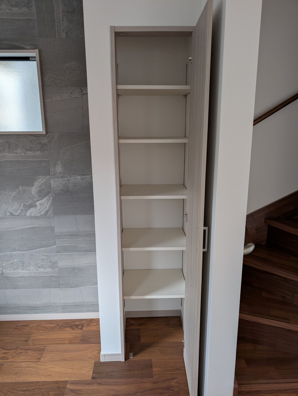リビングは小物などで散らかりやすい場所なので可動棚収納があるととれも便利です