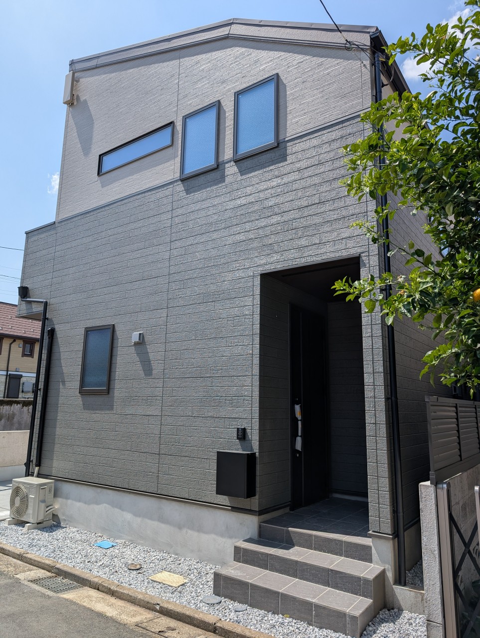 落ち着いた色使いで、シンプルながらもモダンでおしゃれな外観です