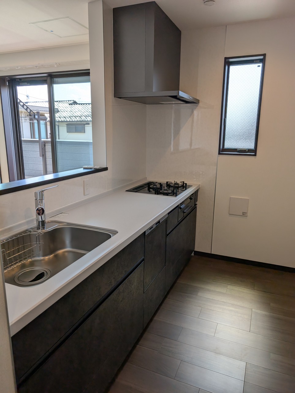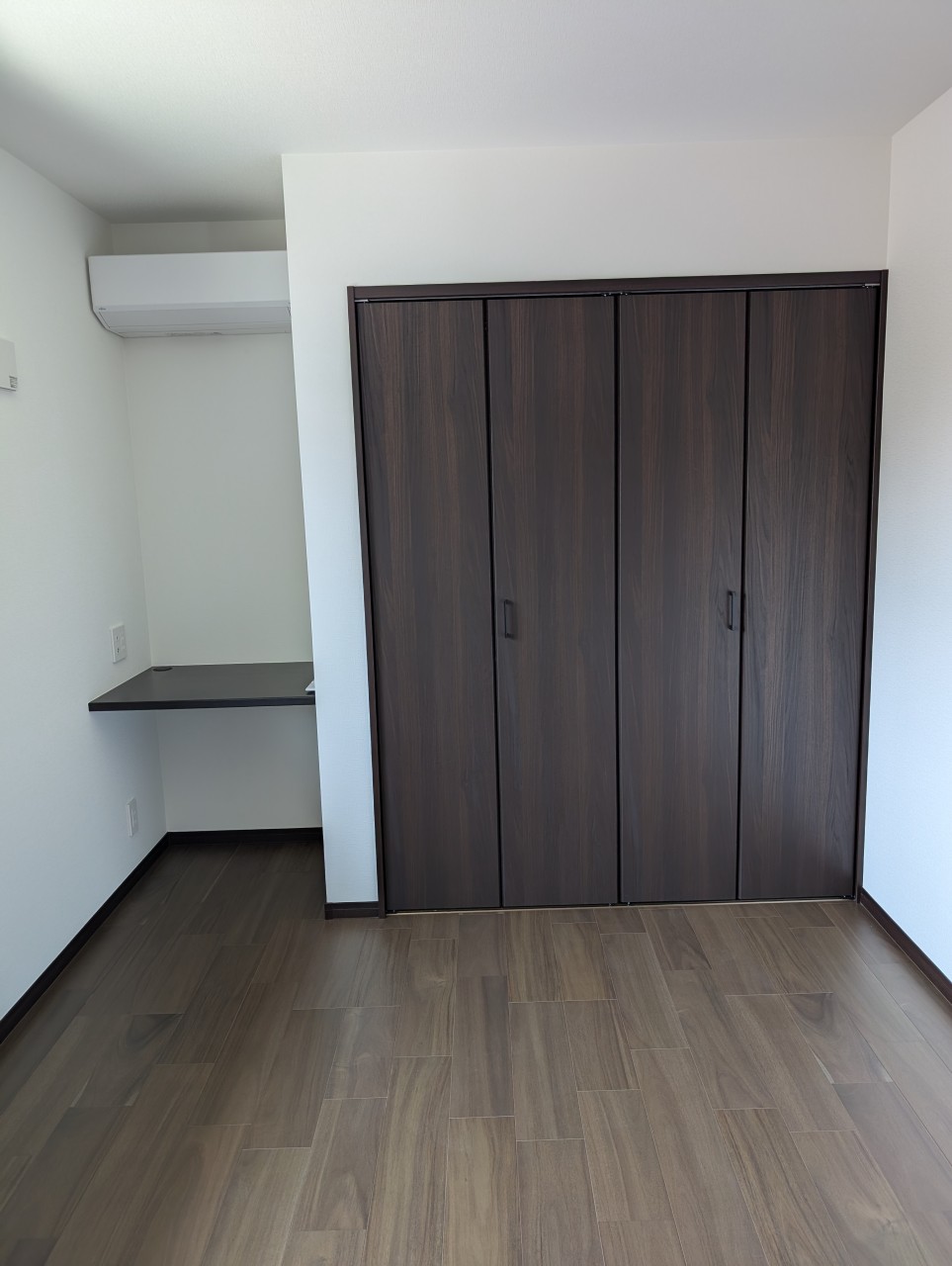 濃いブラウンのフロアと建具がモダンで落ち着いた雰囲気です