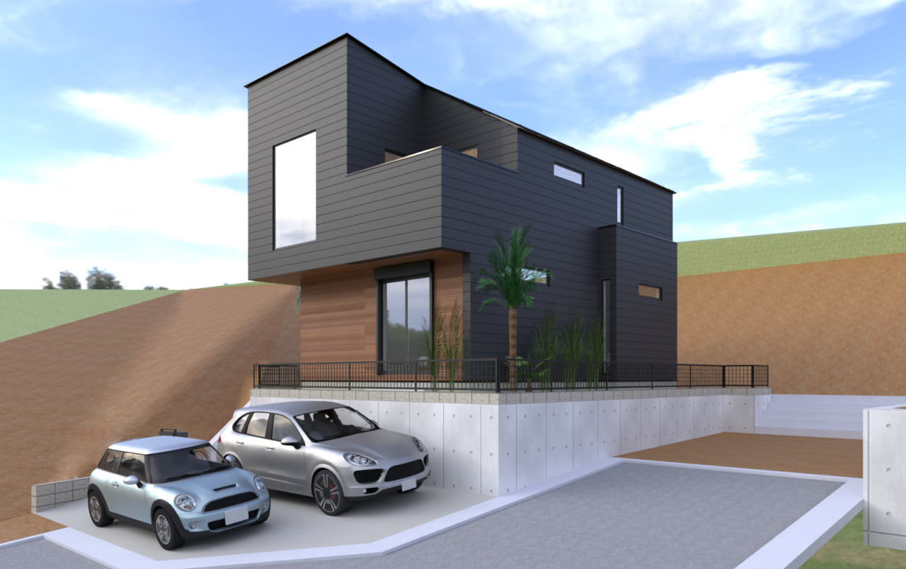 さて、上記の間取りだと、この様な外観パースになります。