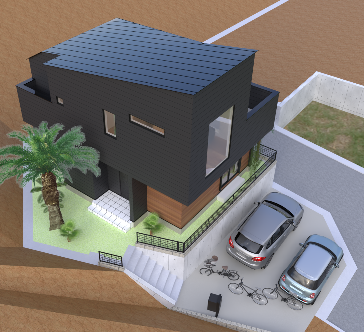 5区画で間取りと外観パースを作成しました。