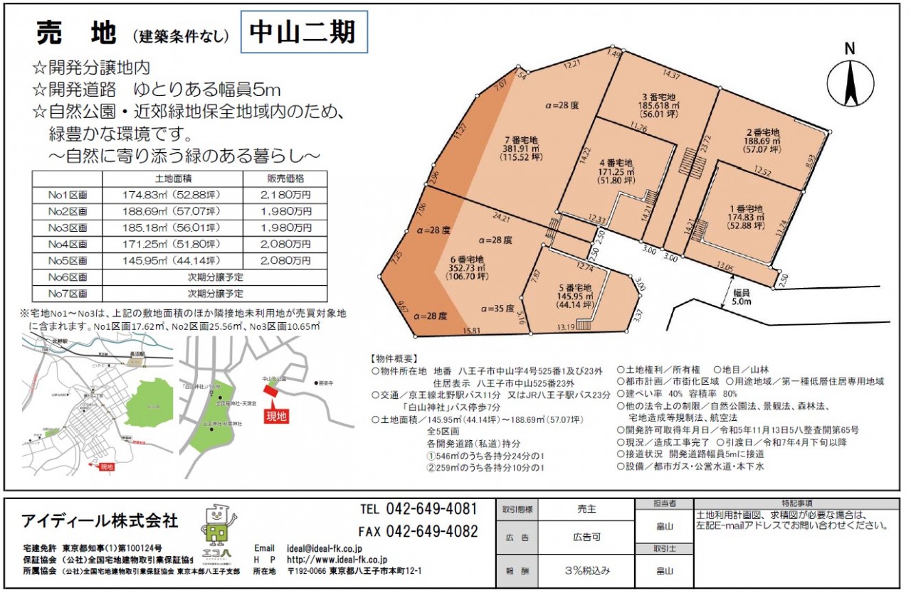 7宅地中、現在5宅地土地の分譲をしています。