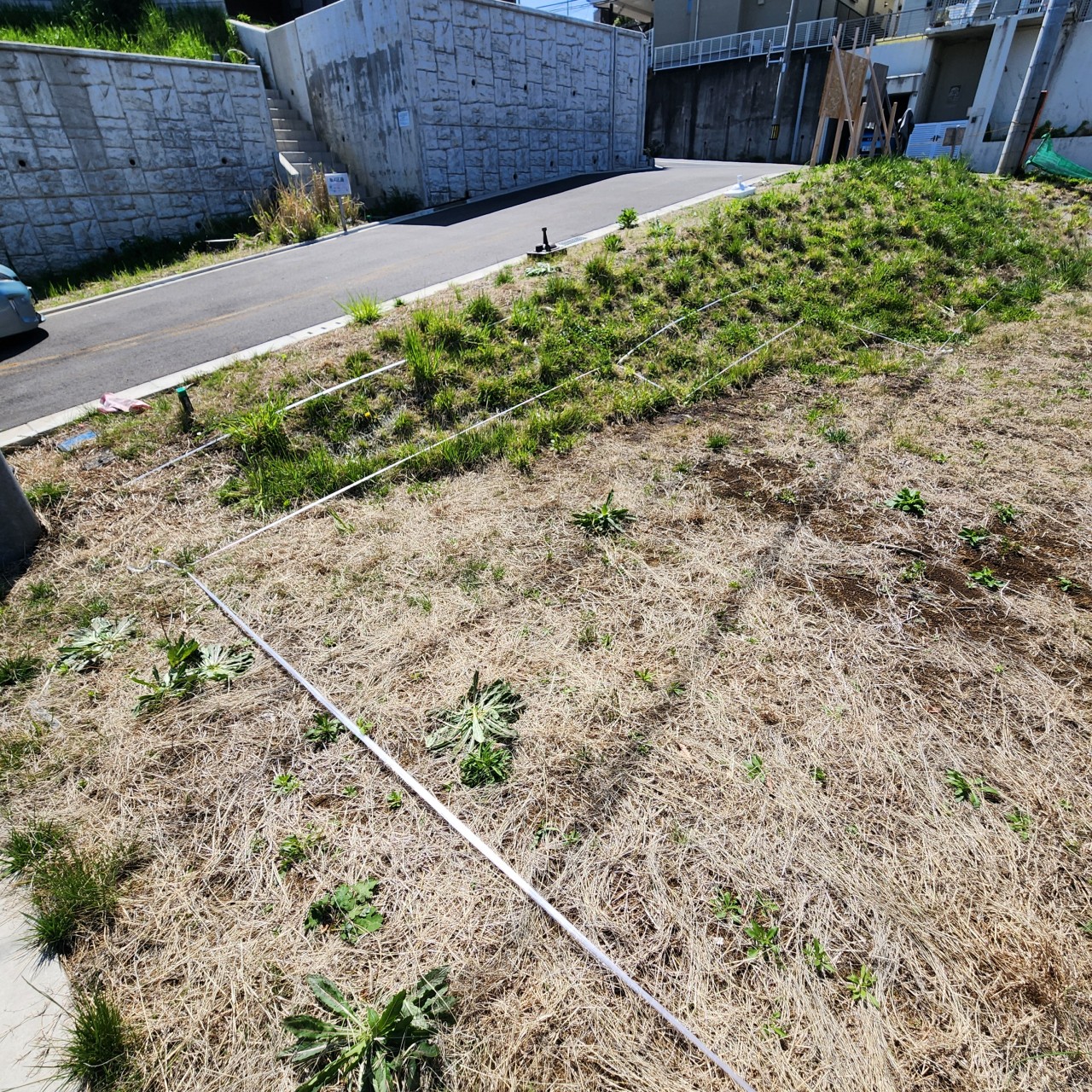 現場には先日、建物の位置が分かるように、「地縄」を張ってきました。
