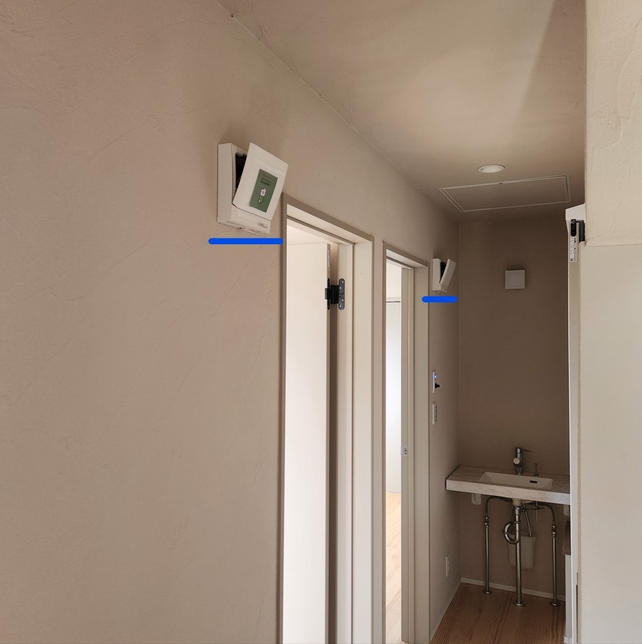 1階の各部屋に設置してある「エアパスファン」を作動して2階のエアコンで冷えた空気を室内に取り入れる様に運転開始。