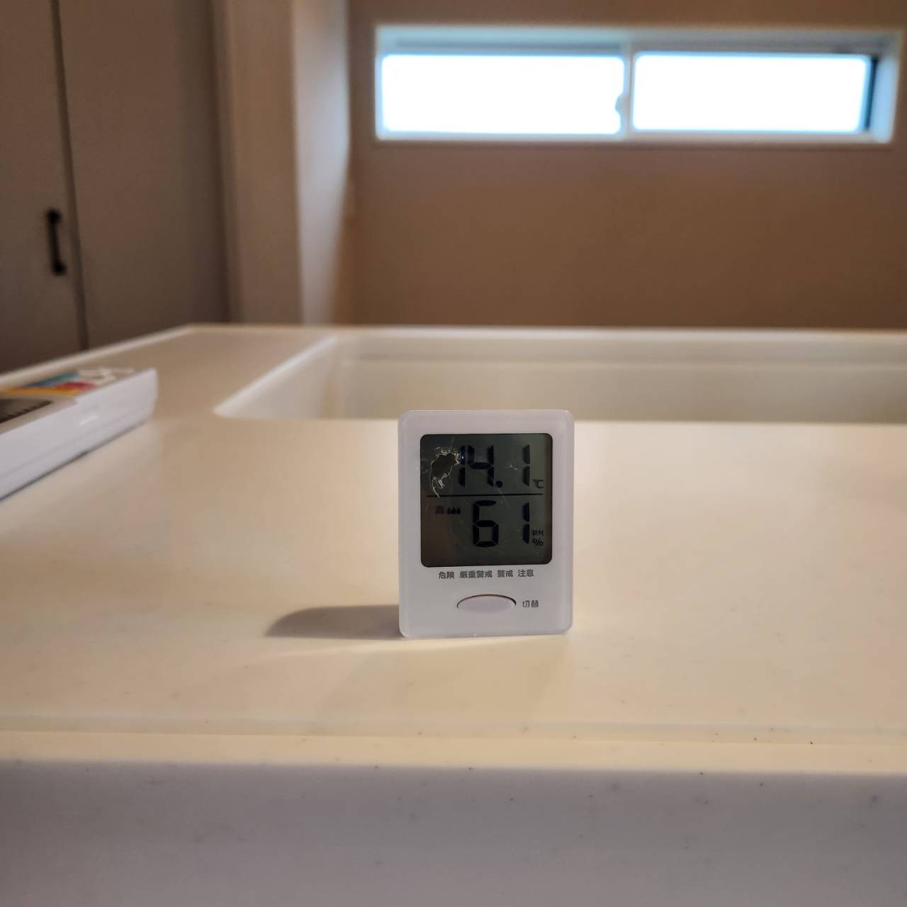 2階のリビングの温度計は14.1度でした。