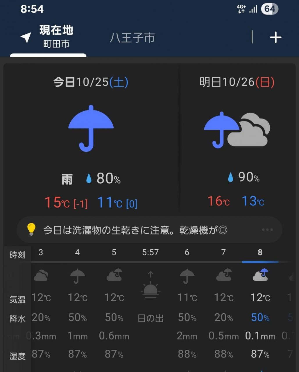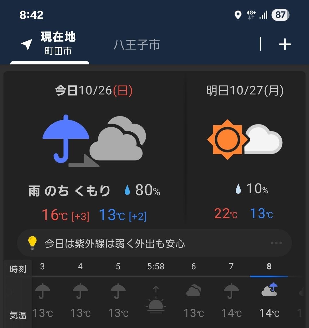今日の八王子市の外気温ですが15度~16度で推移しているようです。