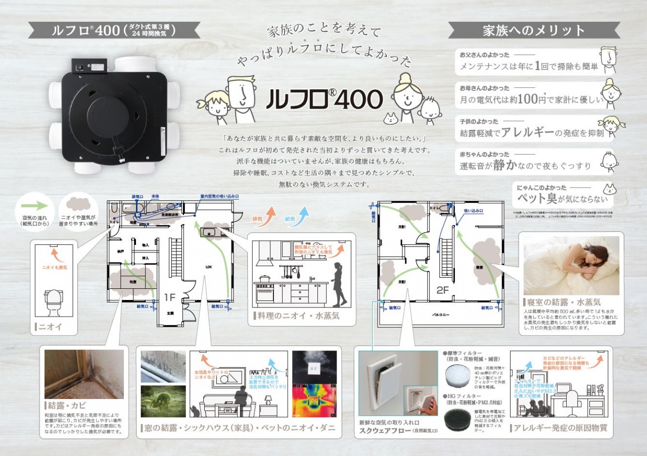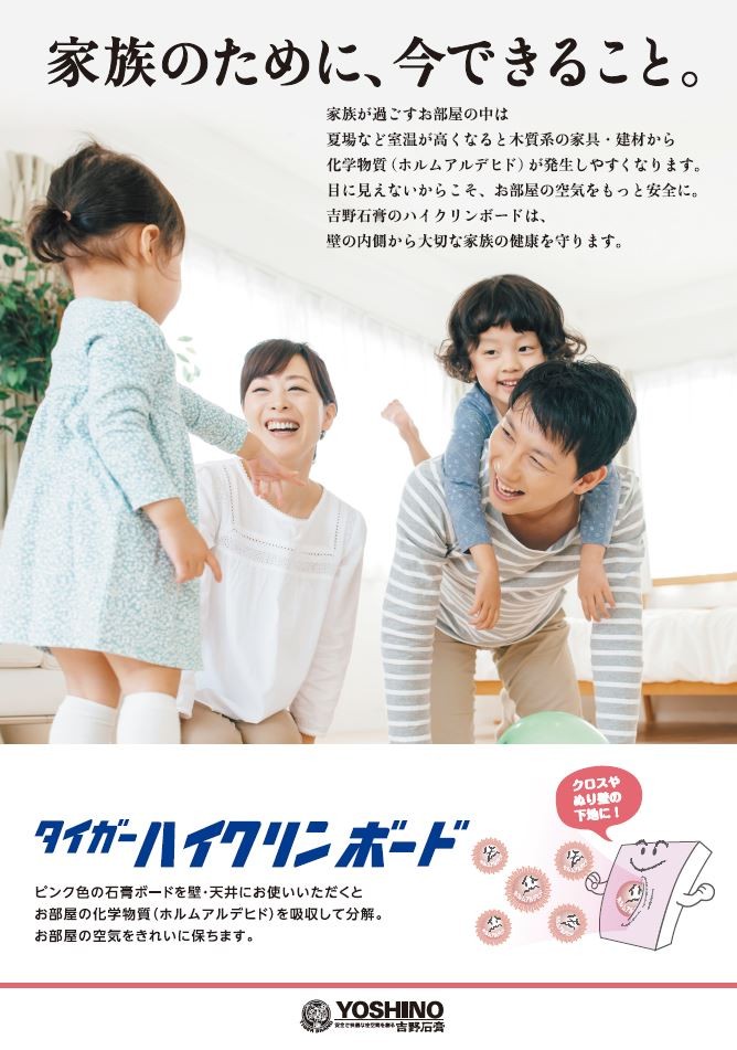 安心して暮らすことができる家だな、と自分たちのチョイスながら思わずにはいられません。こちらの2つの製品プレゼンは各メーカーさんからいただいたものですが、24換気ルフロとホルムアルデヒドを吸着する石膏ボード、ハイクリーンボードの資料もぜひ見ていただきたいです!