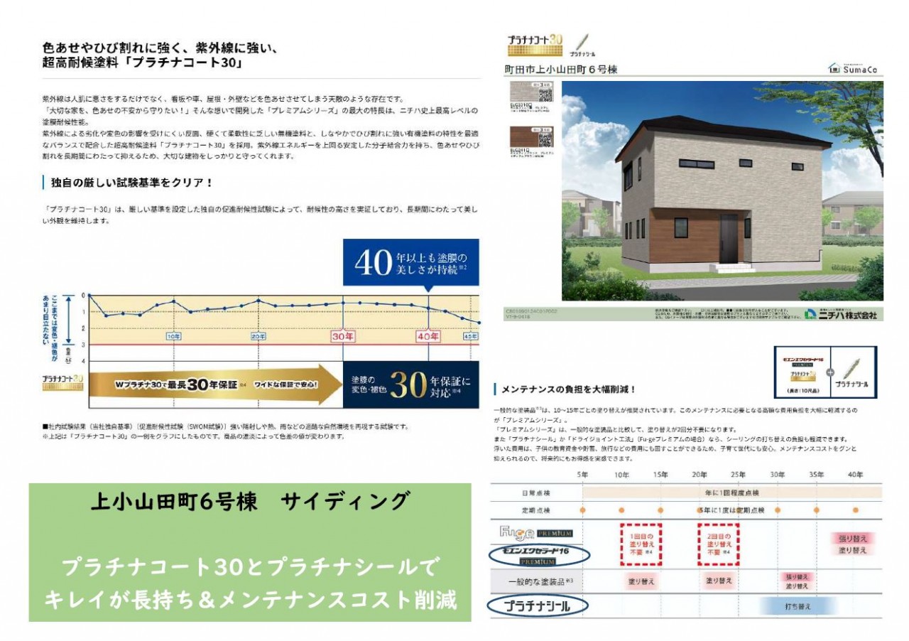 キレイが続きメンテナンススパンの長いサイディングや、自然素材で調湿機能のある珪藻土の壁と天井の仕上げ材なども見どころポイントです!