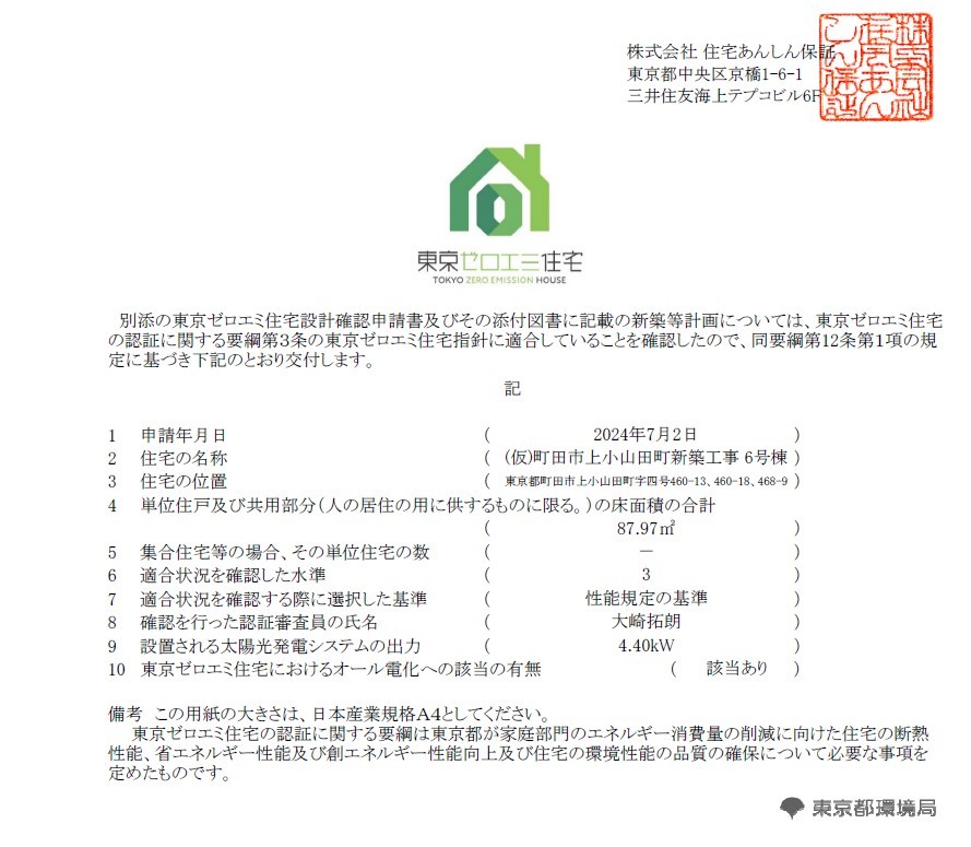 ②東京ゼロエミ水準3取得→Ua値0.41、BEI0.6と購入後の快適な住まいが実現出来ます。