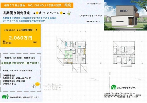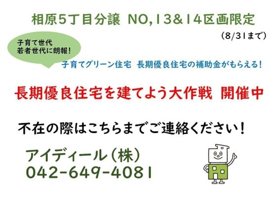神奈川県相原5丁目の分譲でやっていた「13区画と14区画」限定のGXキャンペーンは「長期優良住宅」に変更し、