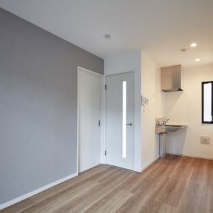 和モダンな外観、シンプルなキッチンや洗面台がおしゃれなワンルーム