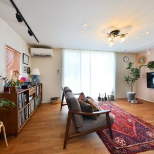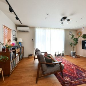 おしゃれなご家族の緑あふれるリビングと素敵なインテリアにかこまれた快適な暮らし