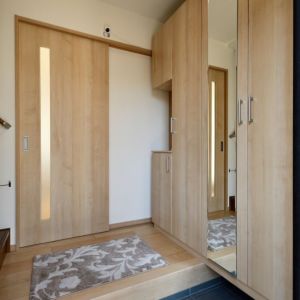 玄関は1つで1Fはご両親世帯、2Fはお施主様世帯