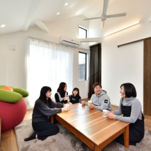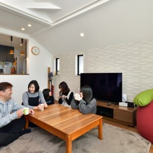 勾配天井をいかした明るい2Fリビング