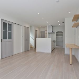 ホワイト系にまとめられた建材で明るいLDK
