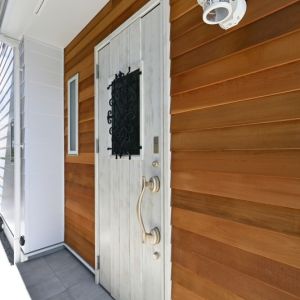 チャネルオリジナルの木製外装材が素敵