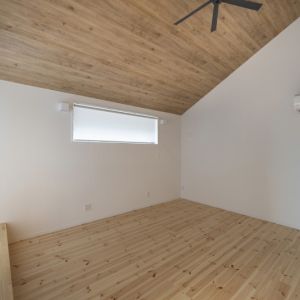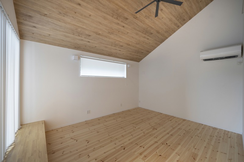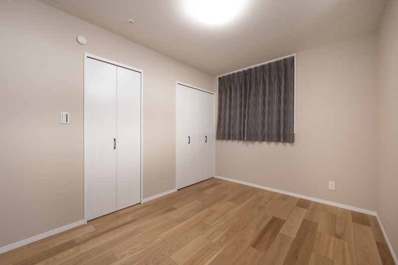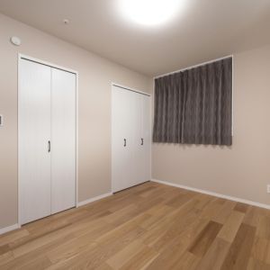 1階主寝室。コーディネートしたカーテンは落ち着いた色合いにしました