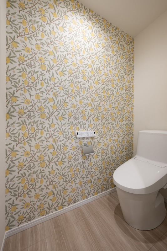 ウィリアムモリスの壁紙がおしゃれなトイレ