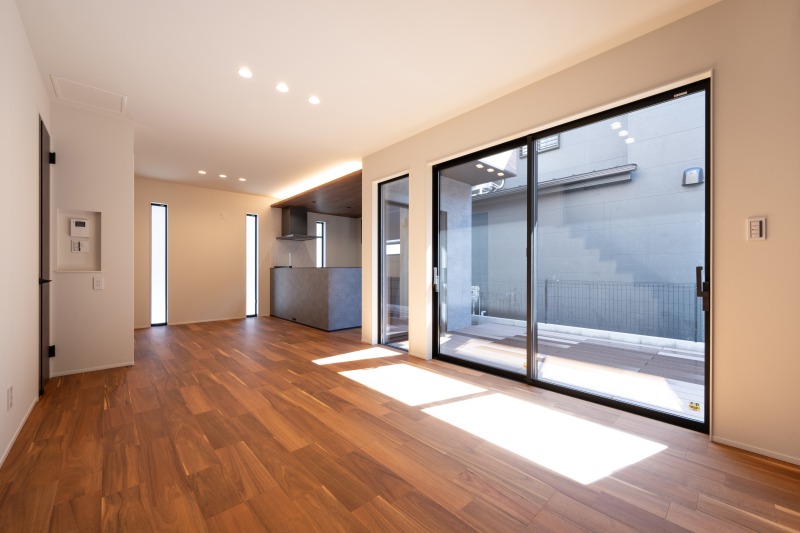 光が燦燦と降り注ぐ大きなサッシのリビング