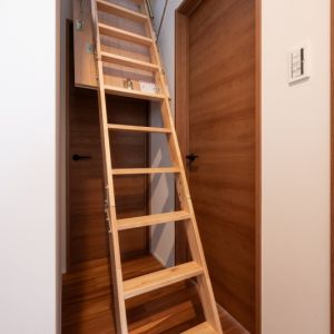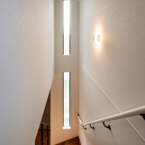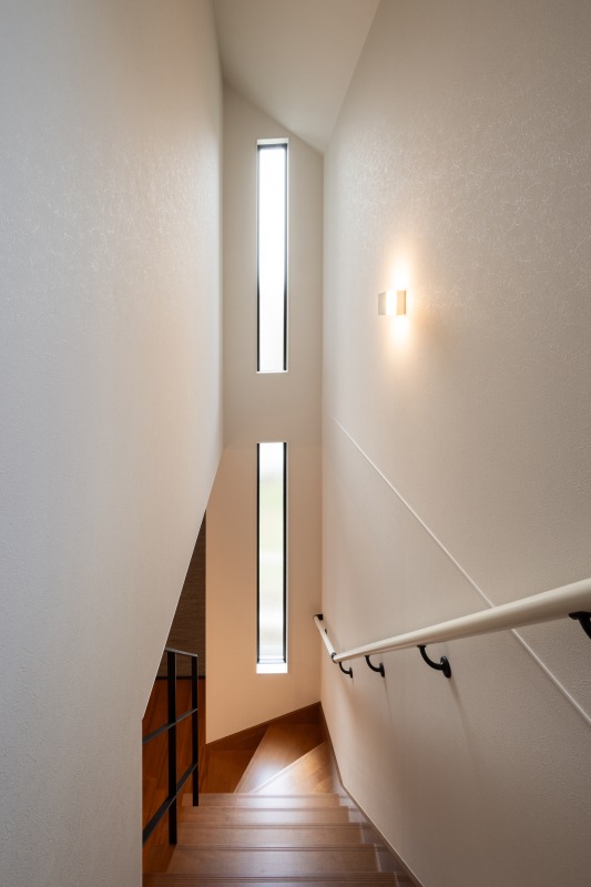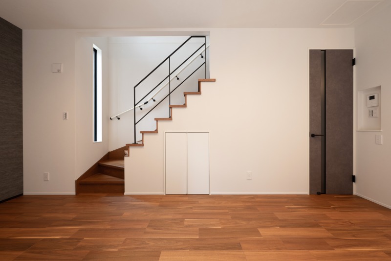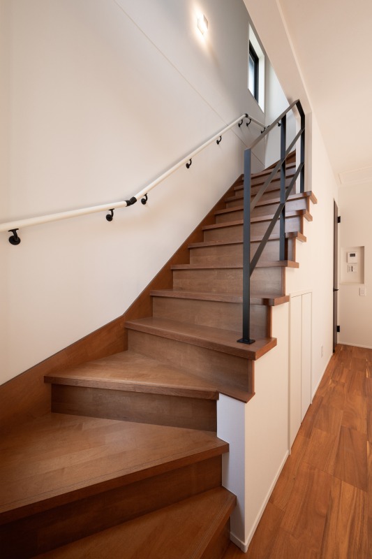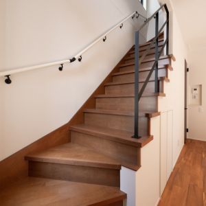 ひな壇階段のおしゃれな化粧手すりが空間を開放的にみせます