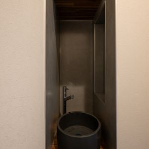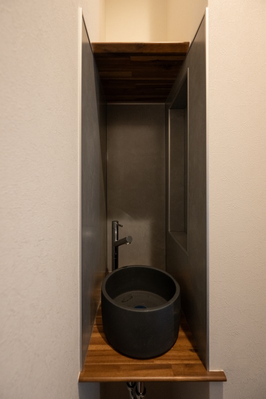 玄関スペースにはお出かけ前の最終チェックもできるミラーを配置