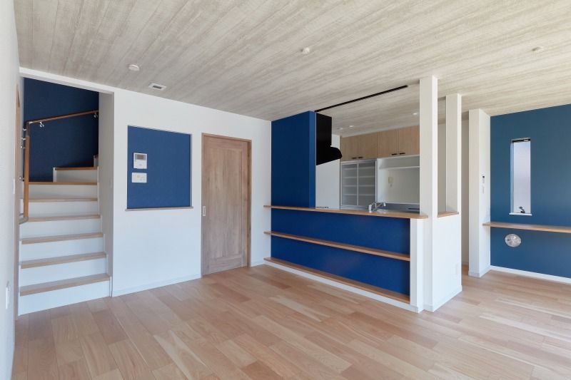 ~ネイビーのアクセントがおしゃれな、子育てアイディアがたくさんつまった明るいおうち~