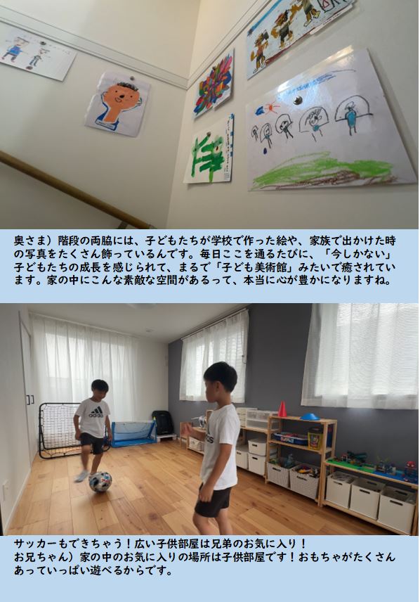 それから、以前は子どもたちが小さい頃、隣の方への音をすごく気にしていました。でも、今の家にしてからは、2階で子どもたちがサッカーをするくらい(笑)になりました。それくらい、音の問題も気にならなくなり、子どもたちも私も、家の中で思いっきり過ごせるようになって、本当に豊かになったなと感じています!