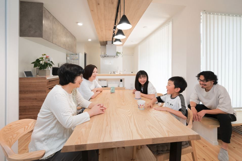 お話を伺ったのは2024年の8月にお引き渡しした、E様ご家族。 ご夫婦とお子さま2人とお母さまの2世帯住宅です。 住宅購入を決めた経緯や住んでからの感想などいろいろとお話を伺いました。