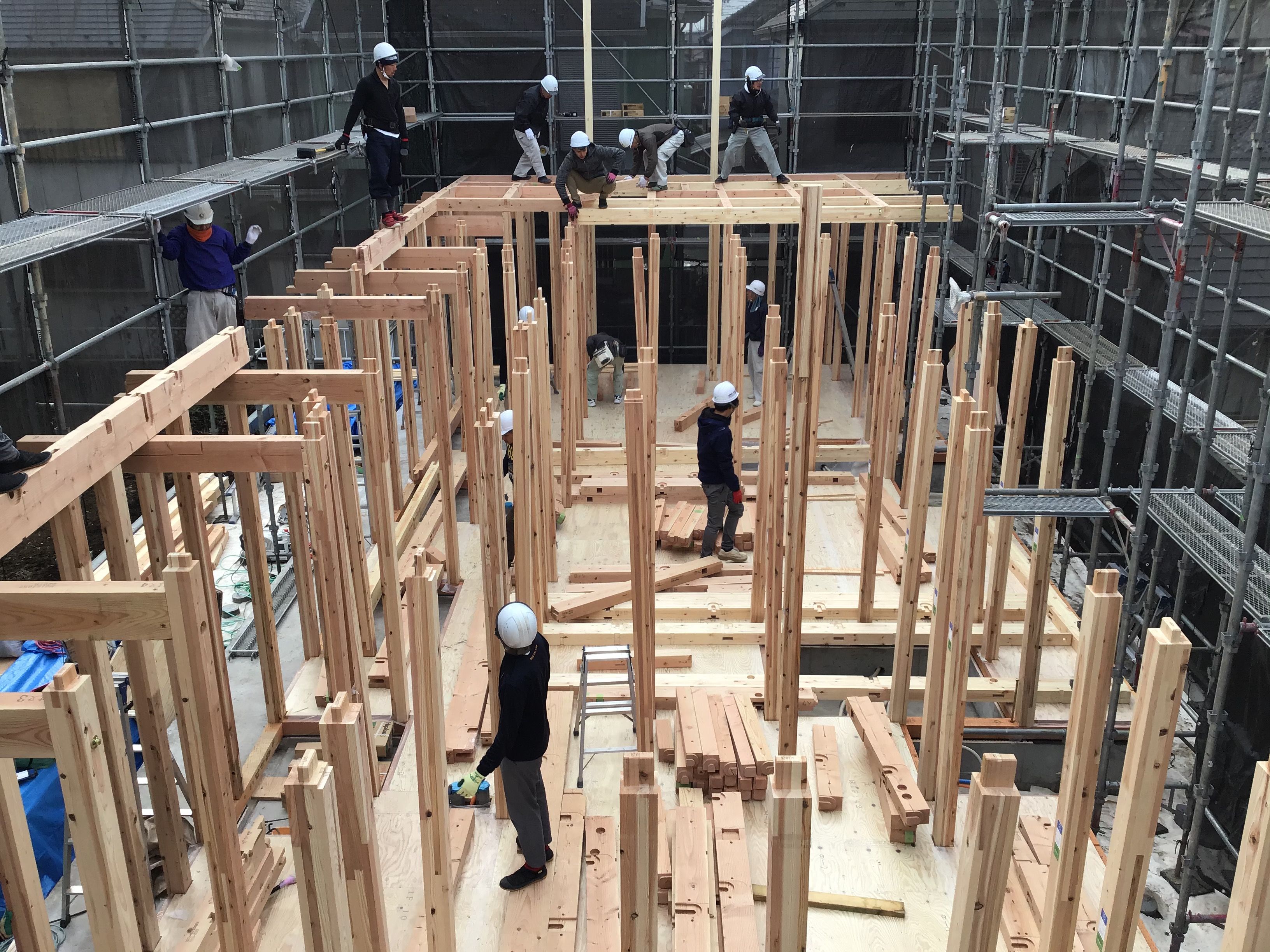 大工さんが入り木工事が始まります。28坪から30坪の住宅で3~4ヶ月前後です