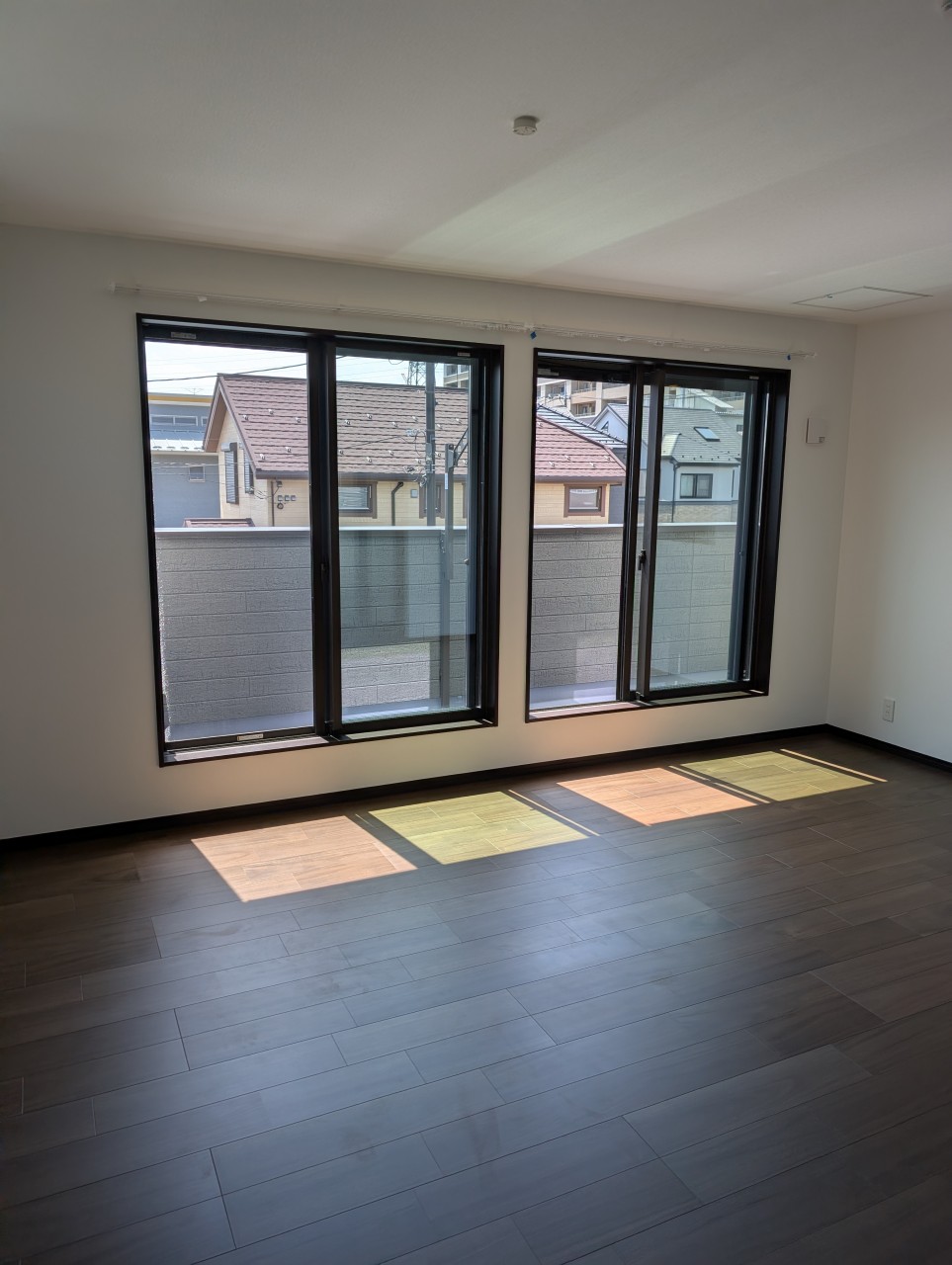 濃いブラウンのフロアと建具がモダンで落ち着いた雰囲気です