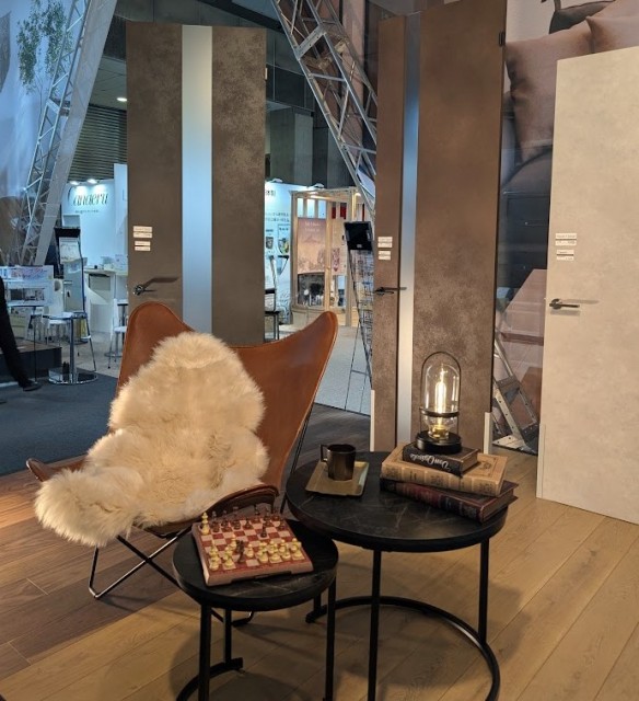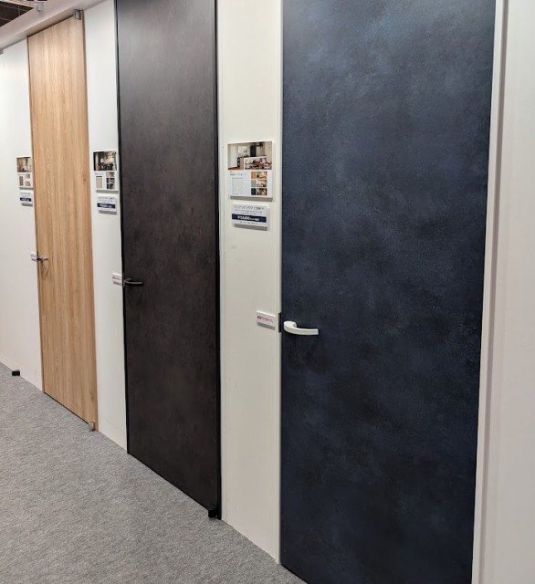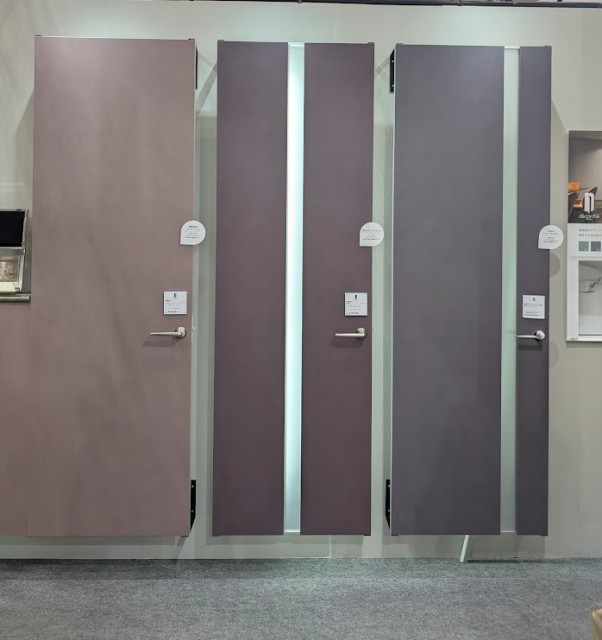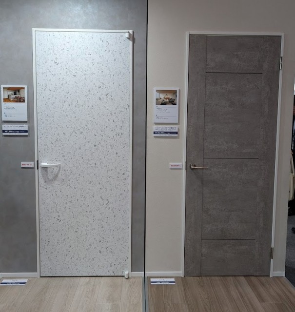 グレー系やダークなソリッドや石目調のドアが沢山見受けられました。ソリッドな単色のドア×石目調の床、石目を思わせる扉柄×木目の床など、異素材感をあわせて見せているのも印象的でした。