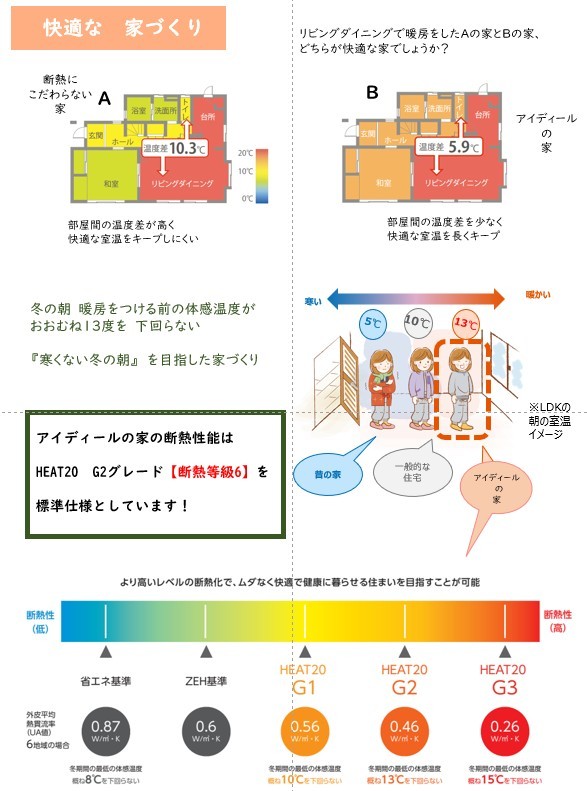 アイディールでは快適な室温環境を保つことができる家づくりをしています。