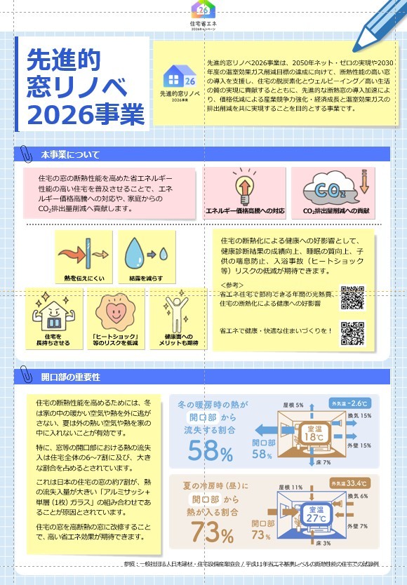 ガラスの交換や内窓設置、外壁からのカバー工法などサッシを断熱性があがるようなリフォームをすると助成金がもらえる、という支援事業になっています。