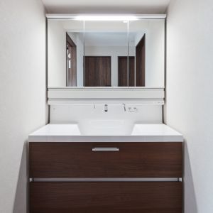 2Fにお風呂とメイン洗面の間取りなので、1Fにはセカンド洗面を